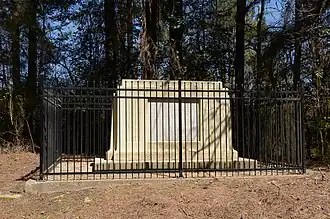 The Dual State Monument is a monument located on the border of Union County, Arkansas, and Union Parish, Louisiana. The monument was built in 1931 to mark the centennial of the establishment of the Arkansas-Louisiana state line. It also marks the birthplace of Arkansas governor George Washington Donaghey, who commissioned the monument after his retirement. The monument features Art Deco bas-relief carvings on its east and west sides. The east side features popular modes of transportation in 1831, including a steamboat, stagecoach, and covered wagon. The west side displays a locomotive, automobile, and airplane to represent the modes of transportation common in 1931. The monument was the first Art Deco-inspired sculpture erected in Arkansas.[2]