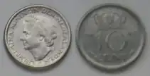| Wilhelmina | Utrecht, Philadelphia, San Francisco and Denver | Silver | Queen's head to the left | Value and mint year between two bonded oak branches | Reeded with no edge lettering | 1926-1928(U), 1930(U), 1934-1939(U), 1941(U and P), 1942(P), 1943(P), 1944(P, S and D), 1945(P) |