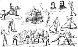 Other early written accounts of hurling matches in Dublin include several 18th century newspaper reports. According to these reports, the most popular hurling venues in Dublin at that time were the Crumlin Commons, Irishtown Green and Phoenix Park. One such account recalls a match which took place on the Crumlin Commons in May 1748, where a selection of hurlers from Leinster defeated 20 hurlers from Munster. In a re-match a month later, the Leinster hurlers proved their worth by beating the Munster selection for a second time.[4] Another report describes a hurling match which took place on Irishtown Green in 1757. The game was held between married men and bachelors for a wager of 50 guineas a side.[5] The tradition of a 'married versus singles' hurling match is still staged by many Dublin hurling clubs on Saint Stephen's Day.[6] In 1778, police officers dispersed a crowd on Summerhill that had assembled in the fields there every Sunday during the summer for the purpose of playing football and hurling. It is believed that this was the exact spot where Croke Park now stands. According to the Freeman's Journal, in August 1779, there was a bet between the penny boys of Smithfield, who had arranged a bull bait for the Fifteen Acres, that they would draw a bigger crowd than "the hurlers of the Phoenix Park". An account from 1792 describes a hurling match which took place in Phoenix Park in front of what was described as a vast concourse of spectators. The report claims that the game had to be abandoned before full-time because the spectators forced their way onto the playing ground.[7]