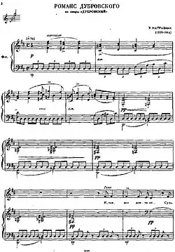 Dubrovsky (Russian: Дубровский) is an opera in four acts (5 scenes), Op. 58, by Eduard Nápravník, to a Russian libretto by Modest Ilyich Tchaikovsky after the novel of the same title (1832) by Alexander Pushkin.