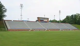 In 1974, a fieldhouse was constructed behind the north endzone.[7] The stadium was expanded in 1984 to include a visitors' seating section on the west side of the stadium, which increased capacity to 6,000.[8] A further expansion in 1993 increased the west side stands to increase the stadium's capacity to 7,120. The stadium underwent a $2.0 million renovation in 2004, with the east side stands completely replaced.[9] At the same time, the existing turf was replaced with TifSport Certified Bermuda grass, the same playing surface as at the University of Texas's Darrell K Royal–Texas Memorial Stadium and the Washington Redskins' FedExField.[10]