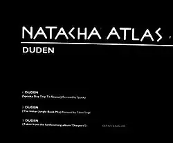 "Duden" is a world music song performed by Belgian singer Natacha Atlas. The song was written by Natacha Atlas, Count Dubulah, Hamid ManTu and Attiah Ahlan and produced by Transglobal Underground for the Atlas' debut album Diaspora (1995). It was released as a promotional single in 1995.[1]