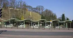 In 2021, a 11 km (6.8 mi) long line bringing 2 new lines of the West Midlands Metro, running from Wednesbury to Brierley Hill via Dudley, began construction to re-instate a tram service along the South Staffordshire Line, before running through the town centre and towards Merry Hill. Phase one is expected to begin operation in 2025, connecting Dudley to Edgbaston Village in Birmingham City Centre, and to Wolverhampton station[68]