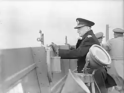 Pound became First Sea Lord in June 1939[22] and was promoted to Admiral of the Fleet on 31 July 1939.[23] His health was doubtful even then, but other experienced admirals were in even poorer health.[24] He also became First and Principal Naval Aide-de-Camp to the King in October 1941.[25]