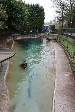 There was a time where Dudley Zoo housed polar bears and Southern elephant seals. Cuddles, a male orca, was housed at the zoo from 1971, until his death in February 1974. The dolphin and whale pools were modified seal and sea lions pools with the walls being built up to create more depth. However, these plans were in breach of the local planning laws and the zoo was ordered to return the pools to their original state. As the zoo was not prepared to invest in new purpose built pools Cuddles was put up for sale, but died before being moved, from long-term gastro-intestinal problems. The pools were returned to their original design and now house the zoo's sea lions.[20]
