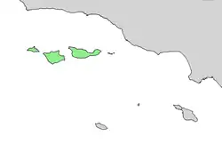 This species is distributed throughout the northern Channel Islands: Santa Cruz, San Miguel, and Santa Rosa islands with the exception of Anacapa. Plants on Anacapa are D. caespitosa. It is found on coastal cliffs and rock outcrops.[5] Tetraploid representatives of this species are also present on Catalina Island.[6] However, some plants with campanulate flowers on Catalina may be of hybrid origin between Dudleya greenei and Dudleya virens subsp. insularis.[6][12]