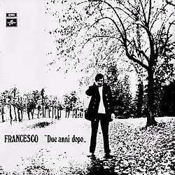 The album was recorded in November 1969 in Milan.[2] On the front cover the name was simply "Francesco"; this was the second time that had happened, as Folk beat n. 1, Guccini's debut, featured this as well.[3] Due anni dopo was the first album in which Guccini collaborated with Deborah Kooperman, an American folksinger who played fingerstyle guitar, a style which was not well known in Italy at the time.[4] Her name was misspelled as "Deborah Kopperman" in the credits. Giorgio Vacchi is listed as arranger, while Guccini wrote all the songs on the album.[3] The main theme was the passage of time, and how bourgeois hypocrisy affects everyday life;[5] notable influences were French music and the style of the Italian poet Giacomo Leopardi. [6][7] "Primavera di Praga" was a criticism of the 1968 Soviet occupation of Czechoslovakia,[8] while the title track is about the years he spent in Modena, in his teens. The two songs, along with "Vedi cara", became Guccini's classics.[9]