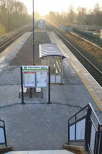 Duffield railway station serves the village of Duffield in Derbyshire, England. The station is located on the Midland Main Line, between Derby and Leeds, 133 miles 8 chains (214.2 km) north of London St Pancras. The unstaffed station is served by East Midlands Railway, which operates local services from Derby to Matlock, via the Derwent Valley Line. It is also a junction with the former branch line to Wirksworth, which is now operated as the Ecclesbourne Valley heritage railway.