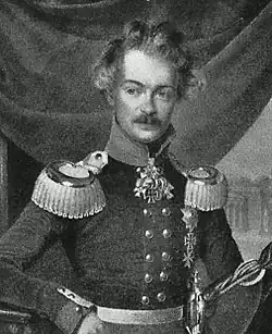 - ^ Liste der Ritter des Königlich Preußischen Hohen Ordens vom Schwarzen Adler (1851), "Von Seiner Majestät dem Könige Friedrich Wilhelm III. ernannte Ritter" p. 16