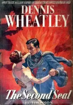 ![]() The cover of the 1950 edition of The Second Seal, depicting the Duke de Richleau and his love interest, the archduchess Ilona Theresa. | |