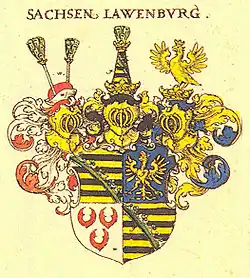 - ^ The House of Wettin also adopted this coat-of-arms, when it gained Saxe-Wittenberg in 1422, which is why the Ascanian barry of ten reappears in the arms of many (formerly) Wettin-ruled states.