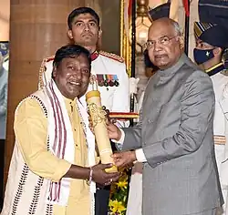 ![]() Dulal Manki receiving Padma Shri award from President Kovind. | |