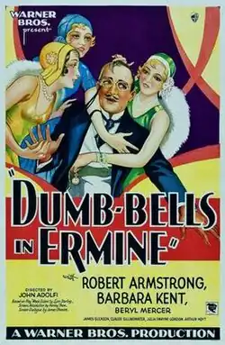 Dumbbells in Ermine is a 1930 American early talkie pre-Code comedy film based on the 1925 play Weak Sisters by Lynn Starling. The film stars Robert Armstrong and Barbara Kent, and features Beryl Mercer, James Gleason, and Claude Gillingwater.[1]