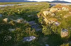Dun Vulan is located in South Uist.[1] The site is now situated on an exposed promontory but was originally on a freshwater lake.[1]