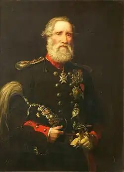 MacDougall was a supporter of part-time and militia units in the British Army. He formed the Royal Lancashire Militia Artillery on 13 April 1853, serving as lieutenant-colonel of the regiment.[1][2][22] He volunteered the regiment for service in the Crimean War in December the following year, believing that his artillery could replace the Royal Artillery garrisons at Gibraltar and Malta.[23][24] His request was declined and a suggestion made that any of his artillerymen who wanted to serve could instead transfer into the Royal Artillery.[25] The regiment was embodied as part of the regular army on 25 January 1855, in response to the war and a resulting offer of service from MacDougall. Initially serving at Liverpool, it saw service in the south of England around Dover and Portsmouth and also travelled to Cork and Kinsale in Ireland.[26][27]