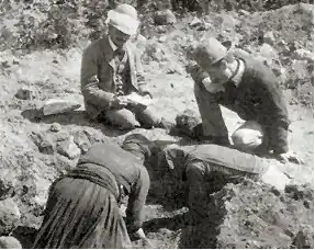 ![]() Duncan Mackenzie is the man kneeling at the edge of the trench to the right. | |