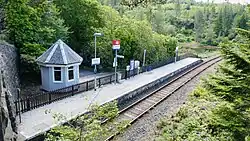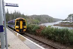 Duncraig railway station is a remote railway station by the shore of Loch Carron on the Kyle of Lochalsh Line, originally (privately) serving Duncraig Castle, a mansion near Plockton, in the Highland council area of northern Scotland. The station is 57 miles 9 chains (91.9 km) from Dingwall, between Stromeferry and Plockton.[4] ScotRail, who manage the station, operate all services at the station.