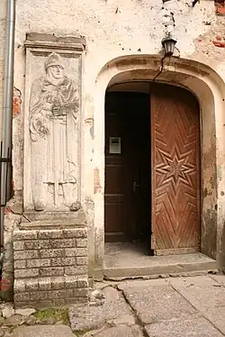 Interesting monuments of art are bas reliefs at both sides of the main entrance in the inner yard – made by A. Voltz in 1909. One represents a warrior monk, the other – a bishop.[2]