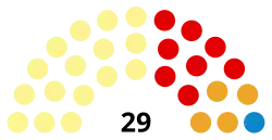 Since the last boundary changes in 2007 the council has comprised 29 councillors representing eight wards, with each ward electing three or four councillors under the single transferable vote system. Elections are held every five years.[18]