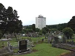 Dundonald Cemetery is a large cemetery in Dundonald, Northern Ireland.[1] It opened in 1905 as a municipal burial ground. It is a closed cemetery, except for spaces in existing plots. It is located beside Ardcarn, on the Upper Newtownards Road, East Belfast.[2] The site was originally known as Donall’s Fortress, named after a nearby fort.[3]