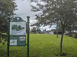 Dunlavin fairgreen is thought to date from the mid-seventeenth century and formed the south-eastern boundary of the original village.[17] Fairs were held in the green from 1661. The area is best known for the Dunlavin Green executions that took place on 24 May 1798 at the beginning of the 1798 Rebellion. Thirty-six prisoners were taken from the Market House and summarily executed on the green without trial. Up to nine others were also hanged from the pillars of the Market House.[18] The majority of the corpses were not claimed or removed on the day of the massacre and were taken to the nearby location of Tournant that evening and buried in a large pit.[18] Fairs continued on the green until the 1960s, when cattle marts took over the principal function of fairs in rural Irish society. The Tynte Estate gifted the fairgreen to the people of Dunlavin in 2021.[17]