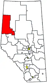 Peace River borders to the north and east. Lesser Slave Lake borders to the east. Grande Prairie Smoky and Grande Prairie Wapiti border to the south. Peace River South borders to the west in British Columbia