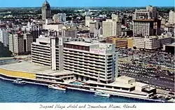 The Dupont Plaza Hotel was a major hotel in downtown Miami, Florida from 1957 until 2004. It occupied a section of the former site of the Royal Palm Hotel. The Dupont Plaza Hotel was the first major hotel of its generation built in downtown Miami since the collapse of the tourist boom in 1926. Popular till the 1960s, the Dupont Plaza Hotel was a coveted destination for domestic visitors. It did get a resurgence of interest in the 1980s and early 1990s, but then suffered some financial troubles.[1]