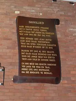 At the beginning of 1956 the first Afrikaans school on the Bluff, KwaZulu-Natal opened its doors to the pupils of Bluff and surrounding areas. The school was initially named Island View School, in 1957 the school was renamed Hoërskool Dirkie Uys. The school started as a primary school (pupils from Grade 1 to Standard 6, now known as Grade 8), in 1959 it became a high school. Mr P.R.T. Nel was the founding principal. In 1962 the first group of pupils matriculated from Hoërskool Dirkie Uys.