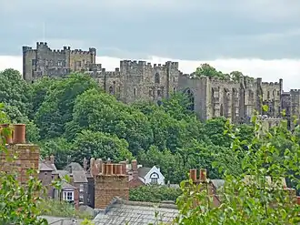 - ^ *Durham Castle: Keep Historic England. "Durham Castle: Keep (Grade I) (1322868)". National Heritage List for England. Retrieved 25 January 2023. *Durham Castle: North Range Historic England. "Durham Castle: North Range (Grade I) (1160921)". National Heritage List for England. Retrieved 28 January 2023. *Durham Castle: West Range Historic England. "Durham Castle: West Range (Grade I) (1121383)". National Heritage List for England. Retrieved 28 January 2023. *Durham Castle: Gatehouse, entrance gateway, side walls, linking walls and front wall Historic England. "Durham Castle: Gatehouse, entrance gateway, side walls, linking walls and front wall (Grade I) (1322867)". National Heritage List for England. Retrieved 28 January 2023. *Durham Castle: Bastion behind No. 50 and attached wall Historic England. "Durham Castle: Bastion behind No. 50 and attached wall (Grade I) (1322897)". National Heritage List for England. Retrieved 28 January 2023. *Durham Castle: Terrace wall, castle wall behind No.s 7-18 consecutive Historic England. "Durham Castle: Terrace wall, castle wall behind No.s 7-18 consecutive (Grade I) (1323246)". National Heritage List for England. Retrieved 28 January 2023. *Durham Castle: Wall around motte on west, north and east sides Historic England. "Durham Castle: Wall around motte on west, north and east sides (Grade I) (1120631)". National Heritage List for England. Retrieved 28 January 2023. *Durham Castle: Wall behind Hatfield College Historic England. "Durham Castle: Wall behind Hatfield College (Grade I) (1121422)". National Heritage List for England. Retrieved 28 January 2023. *Durham Castle: Wall behind No.3 Historic England. "Durham Castle: Wall behind No.3 (Grade I) (1322845)". National Heritage List for England. Retrieved 28 January 2023. *Durham Castle: Wall behind Nos. 16-22 and No.22a (St Chad's) Historic England. "Durham Castle: Wall behind Nos. 16-22 and No.22a (St Chad's) (Grade I) (1121431)". National Heritage List for England. Retrieved 28 January 2023. *Durham Castle: Wall behind Nos. 26-28 Historic England. "Durham Castle: Wall behind Nos. 26-28 (Grade I) (1310622)". National Heritage List for England. Retrieved 28 January 2023. *Durham Castle: Terrace wall north of Bow Lane Historic England. "Durham Castle: Terrace wall north of Bow Lane (Grade I) (1120714)". National Heritage List for England. Retrieved 28 January 2023. *Durham Castle walls: Terrace wall south of Bow Lane and east of Kingsgate Historic England. "Durham Castle walls: Terrace wall south of Bow Lane and east of Kingsgate (Grade I) (1159233)". National Heritage List for England. Retrieved 28 January 2023. *Durham Castle: Durham Castle walls: Wall behind Nos. 12 and 12a Historic England. "Durham Castle walls: Wall behind Nos. 12 and 12a (Grade I) (1161398)". National Heritage List for England. Retrieved 28 January 2023. *Durham Castle walls: Wall behind St John's College from Nos. 1 to 11 consecutive, and garden house attached behind No.11 Historic England. "Durham Castle walls: Wall behind St John's College from Nos. 1 to 11 consecutive, and garden house attached behind No.11 (Grade I) (1322901)". National Heritage List for England. Retrieved 28 January 2023. *Durham Castle walls: Wall to west of No.13 Historic England. "Durham Castle walls: Wall to west of No.13 (Grade I) (1121334)". National Heritage List for England. Retrieved 28 January 2023. *Durham Castle walls: Walls attached to No.s 12 to 15 Historic England. "Durham Castle walls: Walls attached to No.s 12 to 15 (Grade I) (1120695)". National Heritage List for England. Retrieved 28 January 2023.