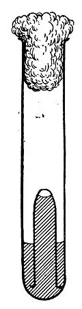 Durham tubes are used in microbiology to detect production of gas by microorganisms. They are simply smaller test tubes inserted upside down in another test tube so they are freely movable. The culture media to be tested is then added to the larger tube and sterilized, which also eliminates the initial air gap produced when the tube is inserted upside down. The culture media typically contains a single substance to be tested with the organism, such as to determine whether an organism can ferment a particular carbohydrate. After inoculation and incubation, any gas that is produced will form a visible gas bubble inside the small tube.[1] Litmus solution can also be added to the culture media to give a visual representation of pH changes that occur during the production of gas.[1][2] The method was first reported in 1898 by British microbiologist Herbert Durham.[1]