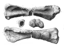 - ^ Hulke, J. W. (1874). "Note on a very large saurian limb-bone adapted for progression upon land, from the Kimmeridge clay of Weymouth, Dorset". Quarterly Journal of the Geological Society of London. 30 (1–4): 16–17. Bibcode:1874QJGS...30...16H. doi:10.1144/gsl.jgs.1874.030.01-04.17. S2CID 129254662.