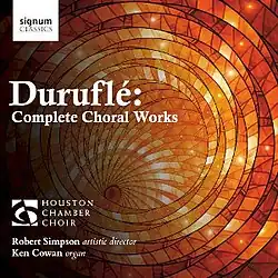 Duruflé: Complete Choral Works is the seventh release by the choral group Houston Chamber Choir performing the unabridged choral works of composer Maurice Duruflé. Conducted by Artistic Director Robert Simpson and performed by organist Ken Cowan, the project is their first to be released under the Signum Classics label.[1] The album won the 2020 Grammy Award for Best Choral Performance.[2][3]