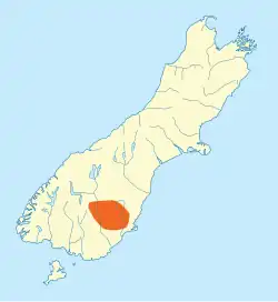| Approximate known distribution (in orange) of the dusky galaxias on a map of the South Island | |