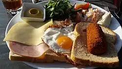 Broodje kroket and Uitsmijter (ham cheese egg sandwich)