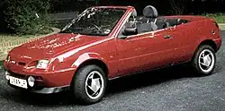 On the usual rear-wheel-drive Escort underpinnings, Dutton placed the body of the new Rico. It made its debut in October 1984, at the Birmingham Motor Show. It used the mechanical parts and doors from a two-door Escort but had a Dutton-developed glass-fibre body over a steel tubular frame.[5] The Rico was a compact and aerodynamic two-door saloon, 3,911 mm (154.0 in) long and much lighter than the donor car.[6] The Rico was a new concept for kit cars, a sporting saloon of modern appearance rather than the typical, traditional two-seat roadster or replica.[5]