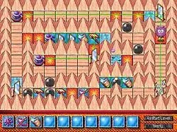 Obstacles include lasers, heat plates, bombs, and lots of other hazards. Dweep must bypass these using only available non-violent tools such as mirrors, wrenches, and buckets of water. The non-violent, mentally challenging nature of the game was a deliberate design feature.[2]