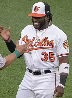 On March 9, 2019, Smith was traded to the Baltimore Orioles in exchange for international pool money.[18] He began the season as the starting left fielder.[19] On May 31, Smith hit his first career grand slam off Drew Pomeranz as the Orioles won 9–6 over the San Francisco Giants.[20] Smith's season was cut short due to injury, playing in just 101 games. He finished hitting .241 with 13 home runs and 53 runs batted in.