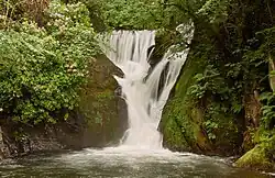 The site for Dyfi Furnace was chosen downstream of the waterfall on the River Einion to take advantage of the water power from the river and charcoal produced from the local woodlands, with the iron ore being shipped in from Cumbria via the Afon Dyfi.