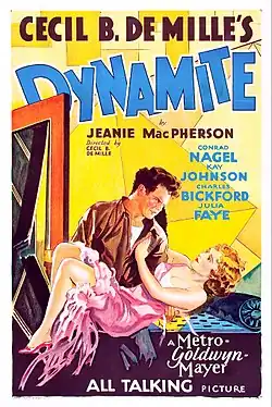 Dynamite is a 1929 American pre-Code drama film produced and directed by Cecil B. DeMille and starring Conrad Nagel, Kay Johnson, Charles Bickford, and Julia Faye.[1] Written by Jeanie MacPherson, John Howard Lawson, and Gladys Unger, the film is about a convicted murderer scheduled to be executed, whom a socialite marries simply to satisfy a condition of her grandfather's will. Mitchell Leisen was nominated for the Academy Award for Best Art Direction.