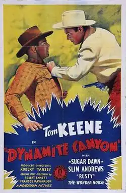 Dynamite Canyon is a 1941 American Western film directed by Robert Emmett Tansey and written by Robert Emmett Tansey and Frances Kavanaugh. The film stars Tom Keene, Sugar Dawn, Slim Andrews, Evelyn Finley, Stanley Price and Kenne Duncan. The film was released on August 8, 1941, by Monogram Pictures.[1][2][3]
