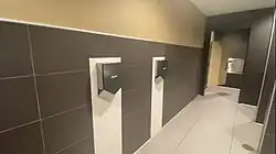 The first commercially available high-speed, horizontal-wiping air dryer was the Mitsubishi Jet Towel, developed since 1991 and introduced in 1993.[3] It has been available in the United States since 2005.[4] There are several technical differences among electric hand dryers, such as airspeed, water containment, energy efficiency, use of heat, type of filter, motor lifespan, and power usage.[5]