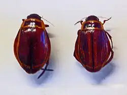 | Dytiscus latissimus male and female, at National Museum (Prague) | |