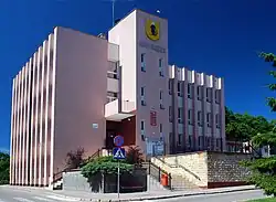 During World War II, within today's town limits, the Germans established and operated a forced labour subcamp of the German military prison in Grudziądz in German-occupied Poland.[15] In the final stages of the war the town's populace was evacuated by the Germans on January 21–22, and on January 24, 1945 the German administration left the town, which then fell to the Soviets.[8] The first local Polish official was appointed in April 1945.[16] Several months later the town was handed over to Poland, and was renamed Dzierzgoń, based on an Old Prussian Zirgūni name. At the turn of 1945 and 1946, the Polish resistance movement carried out successful attacks against communists and Soviets, acquiring weapons, uniforms and money.[16] The town was resettled by Poles from Polish areas annexed by the Soviet Union and Ukrainians expelled from southeast Poland in 1947. The former Roman Catholic Cloister is now a Ukrainian Eastern Rite Catholic Church.