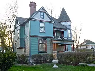 The E.A. and Rebecca (Johnson) Marsh House is a historic dwelling located in Grinnell, Iowa, United States. Marsh was a jeweler and a leading businessman in the city. His wife, Rebecca Penrose Johnson, bought the property in 1891. Her father was a successful businessman who amassed his own fortune, which is probably why the property was bought in her name.[2] The two-story frame structure features a hipped roof with cross gables and a corner tower. It is one 19 Queen Anne houses in Grinnell with a corner tower. Unlike most of the others, it has maintained a high degree of historic integrity.[2] The house was listed on the National Register of Historic Places in 1999.[1]