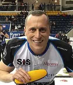 Outside of curling, Harnden works as a senior manager for Instant Products and Operations at the Ontario Lottery and Gaming Corporation.[9] He attended Algoma University, where he graduated with a bachelor's degree in business administration and marketing.[10] He is married to Rachelle Harnden and has two children.[11]