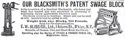 Bliss machines were often huge and very heavy, powered by steam and were sold or used by the company itself to manufacture pressed metal products. These machine tools sported names such as "Automatic Muck Bar Shear", "Gang-Slitting Machine", "Double Seamer for Flat Bottoms Machine", "Double Crank Press", "Double Eccentric Press, Geared", "Reducing Press" and "Power Press No 18 on Short Legs".[4][5]