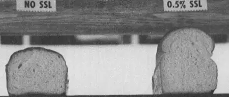 Compared to calcium stearoyl-2-lactylate (CSL), SSL offers some advantages. First, SSL disperses and hydrates more readily in water than CSL. Therefore, SSL does not require pre-hydration. Second, SSL provides better crumb softening than CSL. SSL's crumb softening effect is noticeable up to 5–7 days after baking. Third, in rich bread formulations (e.g. pan bread and hamburger buns), SSL provides better dough strengthening than CSL. Use of SSL in these formulations will yield (nearly) perfect symmetry in the finished baked good. Because of these characteristics, SSL is currently used in more baking applications than CSL.[16]
