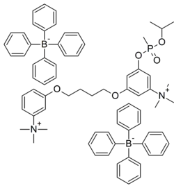 Bis(tetraphenylboranuide) N,N,N-trimethyl-3-({[(propan-2-yl)oxy](methylphosphonoyl)}oxy)-5-{4-[3-(trimethylazaniumyl)phenoxy]butoxy}anilinium | |