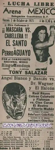 | 6 | El Santo defeated Perro Aguayo | Best two-out-of-three falls Lucha de Apuesta Mask vs. Hair match[1][5][6][7][9] | ||