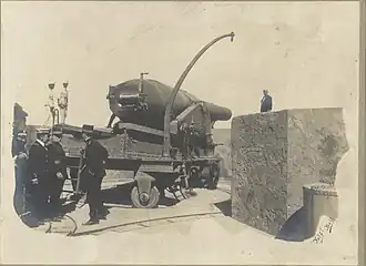 In June 1880, the EOC and the Spanish government signed a contract for a 10-inch and a 12-inch gun. Both were to be delivered in 7 months.[9][10] The price for both guns was 418,000 pesetas or 175,600 Austrian florins. The 25.4 cm gun arrived in October 1881.[11] However, in June 1882, the 12-inch gun had not yet been delivered.[9]